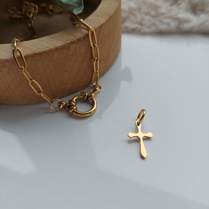 Deze mooie bedel met kruis past perfect aan onze schakelkettingen. Je koopt één ketting (en misschien wel) meerdere bedels om elke dag weer een andere look te creëren. De ring kan in zilver- of goudkleurig RVS en is makkelijk te bevestigen aan de ketting. LET OP! Dit product betreft alleen de bedel, de bedelketting kan je er los bij kopen.